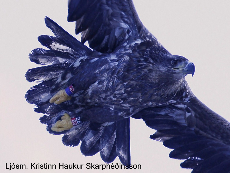 Ungir ernir eru dökkir yfirlitum og með dökkan gogg. Þessi er tæplega 2ja ára og sást í grennd við fóðurbretti á Snæfellsnesi í mars 2008. Ljósm. Kristinn Haukur Skarphéðinsson.