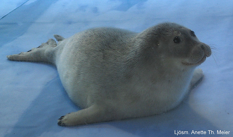 Hringanóri er meginfæða hvítabjarna. Á sýningunni á Hlemmi er einn slíkur uppstoppaður, reyndar kópur, sem skotinn var á Eskifirði 1985.Ljósm. Anette Meier.