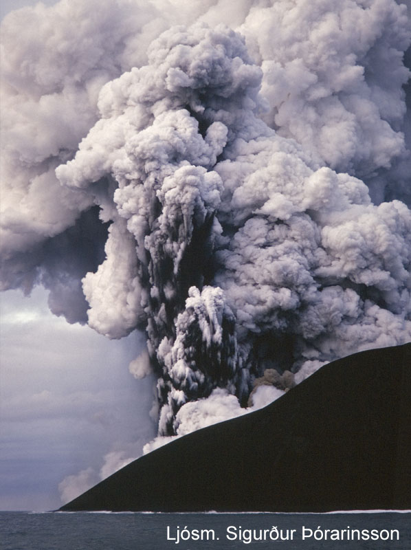 Gosið í Surtsey 5. febrúar 1964. Ljósm. Sigurður Þórarinsson.