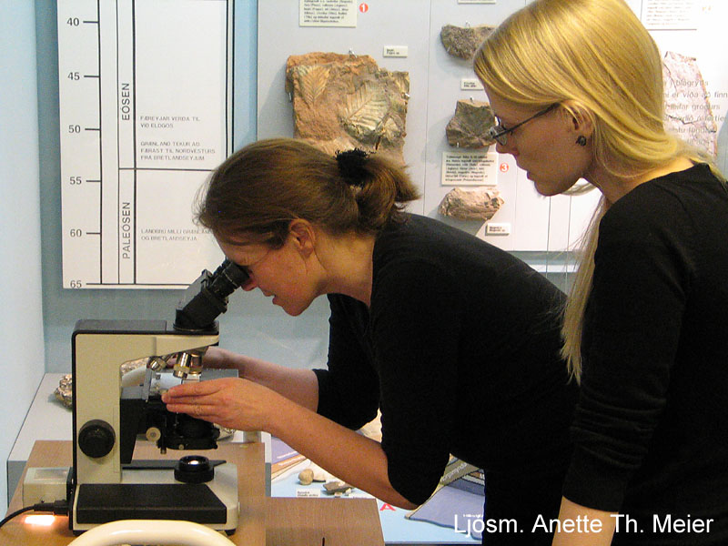 Þörungar skoðaðir í smásjá. Ljósm. Anette Th. Meier. |