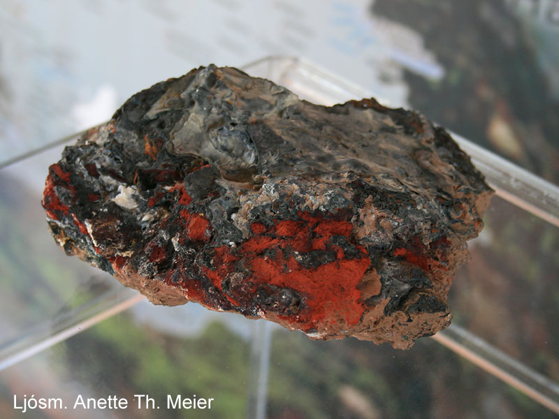 Rauður leir er litaður af hematíti.Ljósm. Anette Th. Meier.