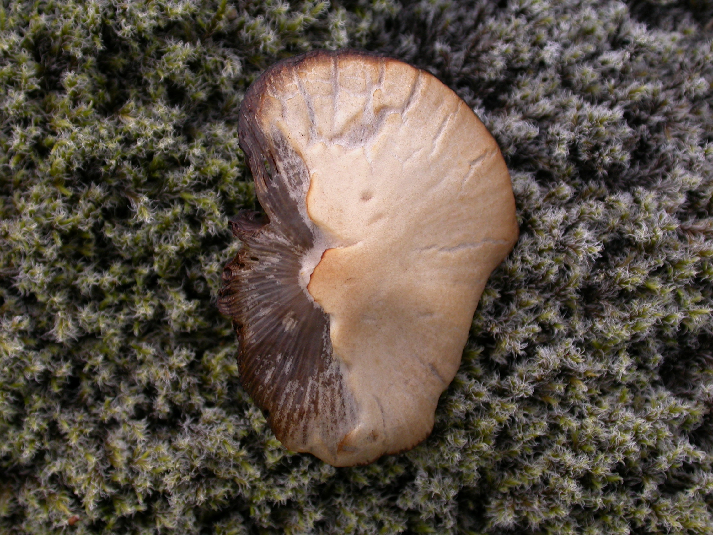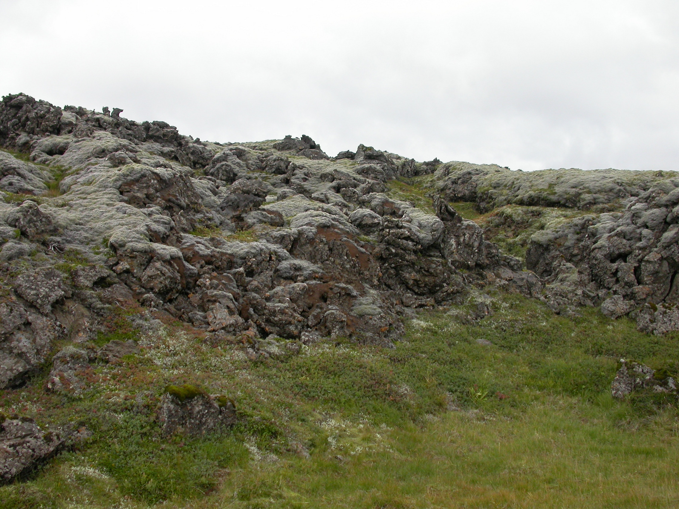 | Jaðar Svínahrauns. Skemmdir ná að hrauninu en ekki upp á það. Ljósm. Erling Ólafsson. | Hattsveppur dekkri á þeirri hlið sem að virkjun snéri. Ljósm. Erling Ólafsson. |