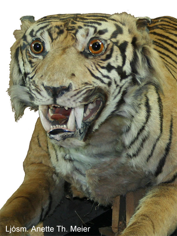 Einn eftirminnilegasti gripurinn sem til sýnis var í Náttúrugripasafninu á tímum þess í Safnahúsinu er tígrisdýrið. Það er komið aftur í húsið á sýninguna. Ljósm. Anette Th. Meier.