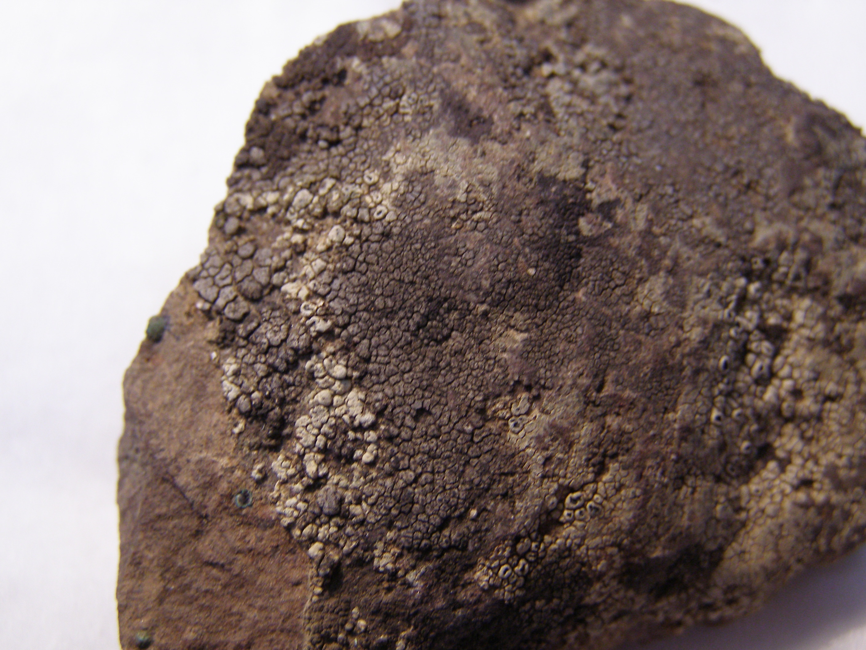 Skorpuskeðja sem safnað var við Fnjóská í Dalsmynni 2007. Sjá má leyfar af flúðaskorpunni mynda ljósan kraga um skorpuskeðjuna sem byrjar sem sníkill á flúðaskorpunni, tekur yfir þörunga hennar og drepur hana smám saman. Skorpuskeðjan sjálf er gráleit eða grábrún með reitað þal og sjá má skjóðumunnana sem svarta depla.