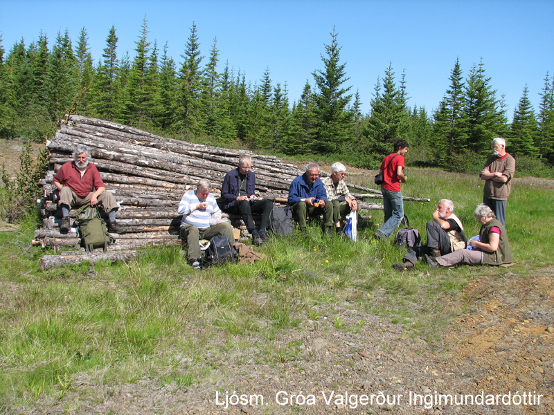 Meðfylgjandi myndir eru frá skoðunarferð hópsins í kringum Lagarfljót undir leiðsögn Helga Hallgrímssonar fjölfræðings. Á sínum yngri árum skoðaði Helgi mosa og hefur engu gleymt, en síðustu ár hefur hann einbeitt sér að skrifum um sveppi. Vænta má að glæsileg sveppabók sem Helgi hefur unnið að síðustu árin komi út á áður en langt um líður. Starfsmaður Náttúrufræðistofnunar, Gróa Valgerður Ingimundardóttir líffræðingur, fékk jafnframt að slást í för með hópnum þennan dag enda ekki á hverjum degi sem hópur fólks sýnir tegundagreiningu mosa á Íslandi áhuga.