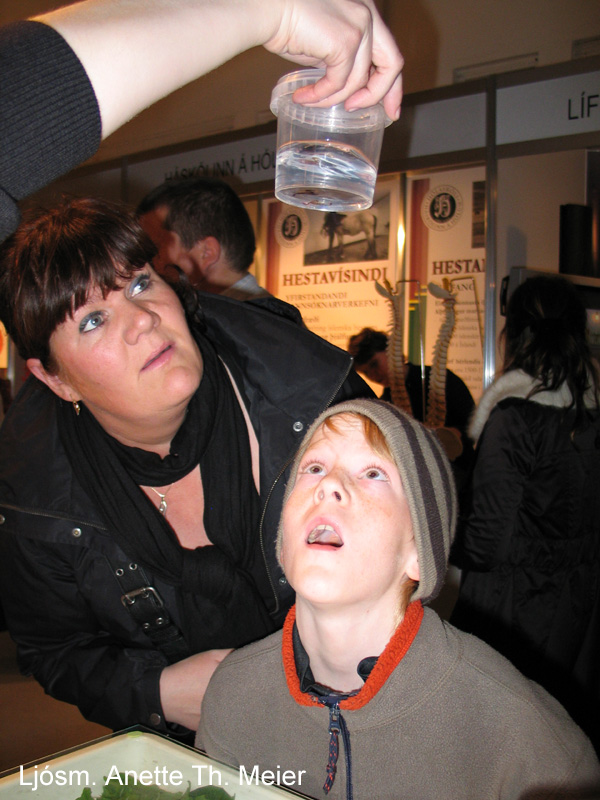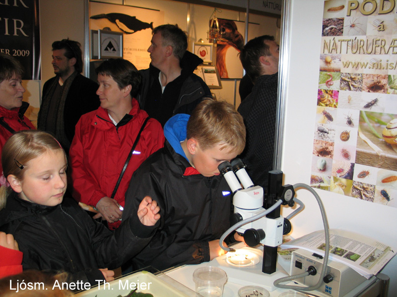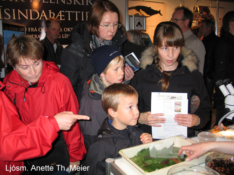 Það voru ekki bara hlaupfiðrildin og gúmmíormarnir sem trekktu að heldur eru börn og fullorðnir mjög áhugasöm um pöddurnar og kviknuðu hjá þeim margar spurningar. Svör við þeim er að finna á vefnum um pöddur.