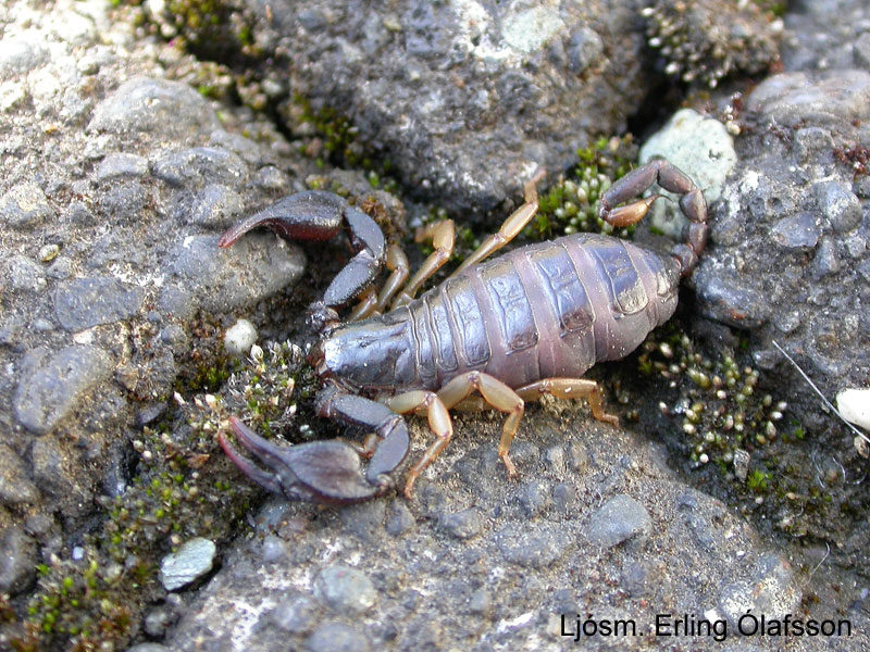 Týrusporðdrekinn sem er hjá Náttúrufræðistofnun. Myndin er tekin áður en ungarnir komu í heiminn. Ljósm. Erling Ólafsson.