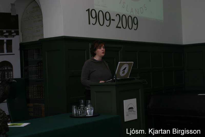 Umhverfisráðherra, Svandís Svavarsdóttir, flytur ávarp sitt á ársfundi Náttúrufræðistofnunar 2010. Ljósm. Kjartan Birgisson.