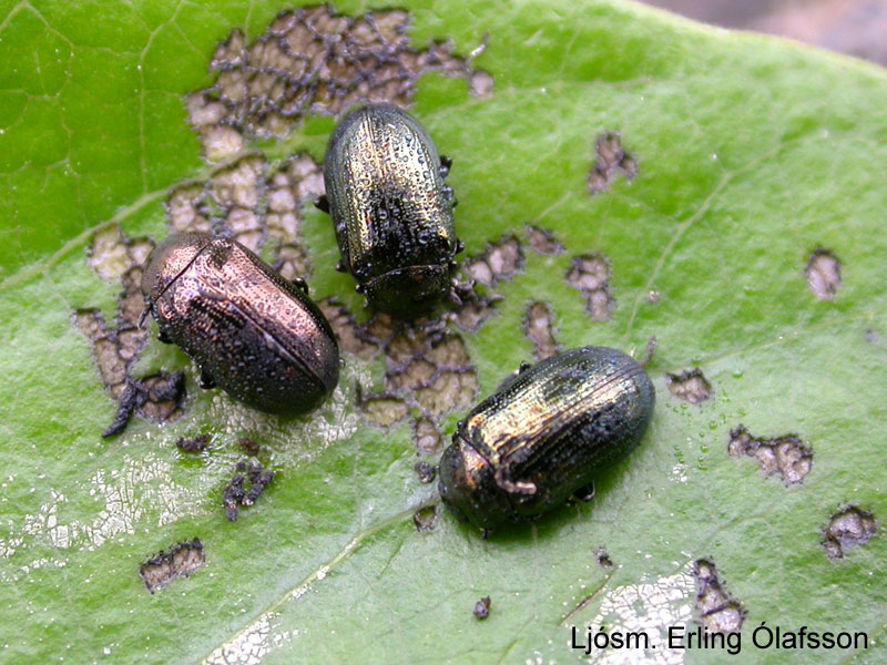 Það var asparglyttan alræmda sem hafði fylgt trénu en hún er annálaður skaðvaldur á öspum og víðitegundum ýmiskonar. Hátt í hundrað bjöllur duttu af trénu þegar eitri var úðað á það. Asparglytta er nýlegur landnemi og afar efnilegur skaðvaldur á trjám og runnum í görðum okkar. Hún er nú orðin einkar fjölliðuð í Mosfellsbæ, í nágrenni meintra upptaka tegundarinnar hér á landi, og eykur hún útbreiðslu sína inn í höfuðborgina jafnt og þétt með hverju árinu.
