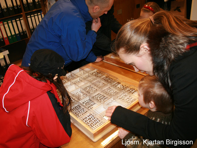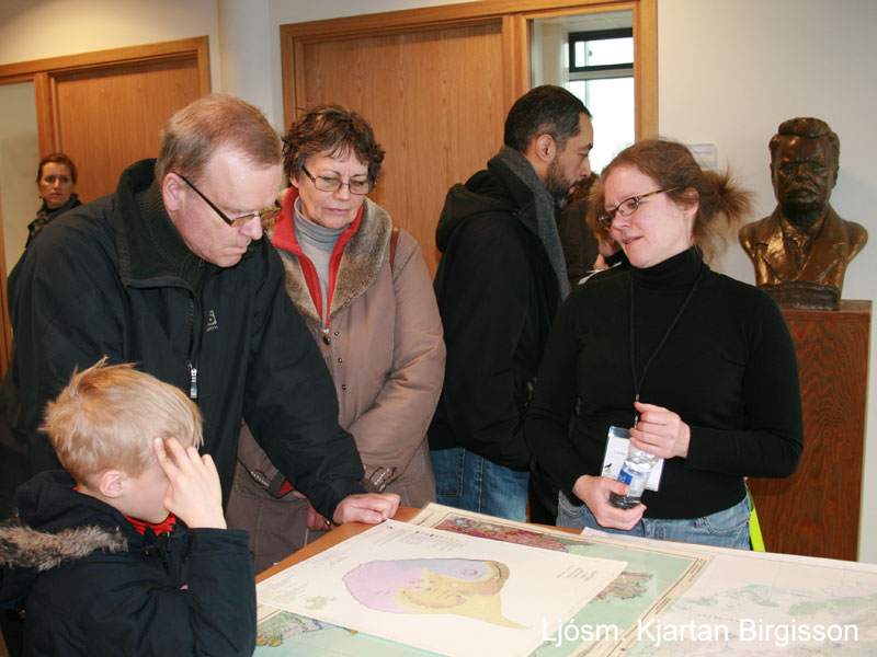 Fjölmenni á opnu húsi 07.03.2011 Hlusta Forsíða chevron_right Fréttir chevron_right 2011 chevron_right Fjölmenni á opnu húsi Húsið var opið milli kl. 13 og 17 og var stöðugur straumur fólks allan tímann þrátt fyrir rok og rigningu og þurftu margir frá að hverfa. Sérfræðingar stofnunarinnar tóku á móti gestum og fræddu þá um störf sín. Fræðst um rjúpuna. ©KB Margar pöddutegundir. ©KB Gestir skoða jarðfræðikort. ©KB Loftmyndir skoðaðar í þrívídd. ©KB Geirfuglinn er sívinsæll. ©KB Áhugamenn um sæfjaðrir. ©KB Myndskeið frá opnu húsi á YouTube