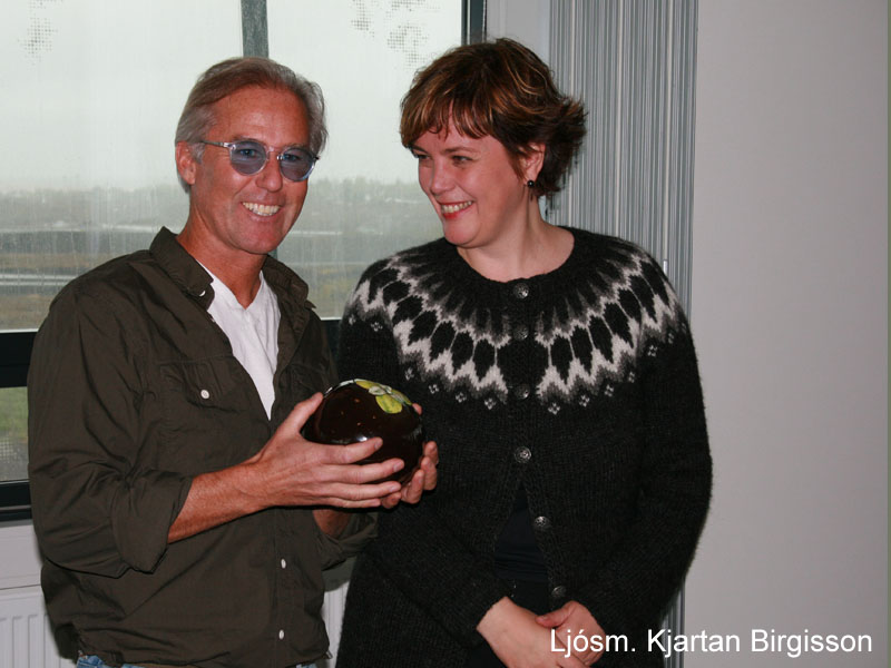 Ragnar Axelsson, RAX, með fjölmiðlaverðlaunin 2011 og umhverfisráðherra, Svandís Svavarsdóttir. Ljósm. Kjartan Birgisson