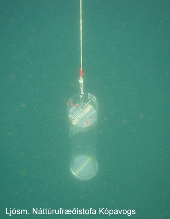 Vatnssýnataki: Búnaður til vatnssýnatöku. Ljósm. Náttúrufræðistofa Kópavogs