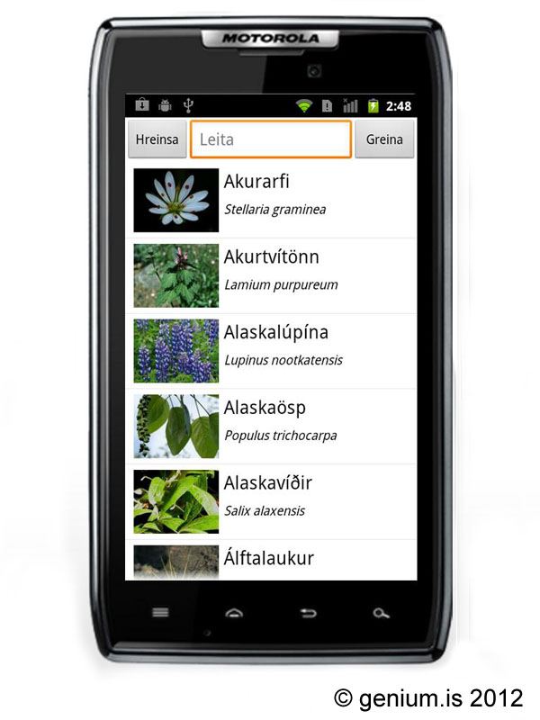 Við þróun og smíði hugbúnaðarins var leitað í plöntusafn Náttúrufræðistofnunar Íslands, leitað var eftir sérkennum hverrar plöntu, þau skráð og flokkuð niður. Einkenni ólíkra plantna voru borin saman og auðkenni tegunda þannig dregin fram. Niðurstaðan er einfalt viðmót þar sem notandinn sjálfur velur einkenni sem hann kýs að greina plöntuna eftir. Hægt er að greina eftir fjölda krónublaða, lit, blaðröndum stöðu á stöngli, stönglinum sjálfum, hæringu hans, laufblöðum og svo mætti lengi telja. Hörður Kristinsson grasafræðingur hjá Náttúrufræðistofnun Íslands lagði til allan texta í lýsingar, ljósmyndir og grunn í útbreiðslukortin, einnig þau greiningaratriði sem notuð eru í lyklinum. Sara Riel listamaður teiknaði allar skýringarmyndir.