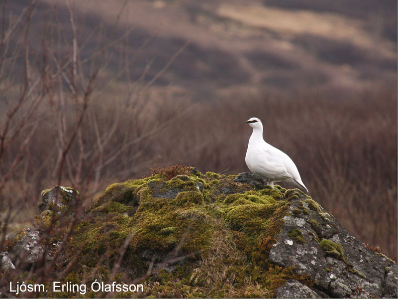 Rjúpukarri hefur valið sér óðal í Búrfellshrauni í Garðabæ. Ljósm. Erling Ólafsson.