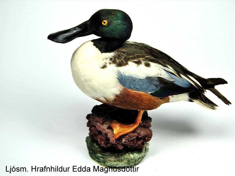 Úr safni Náttúrufræðistofnunar Íslands, uppsett skeiðönd. Ljósm. Hrafnhildur Edda Magnúsdóttir.